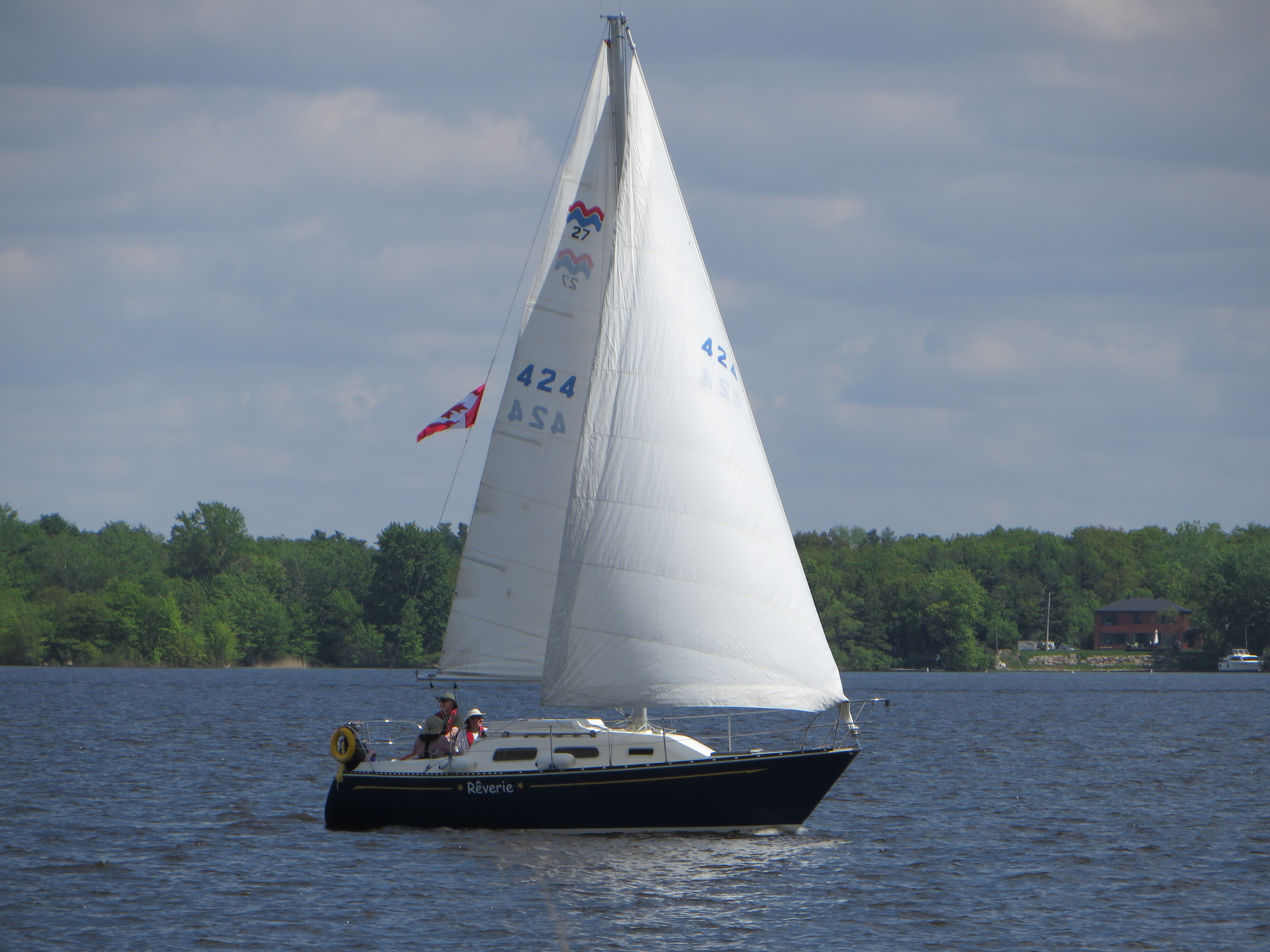 This the weblog of our adventures, big and small, in owning, maintaining and sailing our new to us 1983 Mirage 27. We bought this boat last fall from the widow of its former owner. She is a well cared for gem of a boat designed by the very talented Robert Perry. This boat is a move up from our Tanzer 22, A’bhan-dia Fand, which was a wonderful boat that introduced us to the joy of sailing and protected us from ourselves while we learned the ropes. We were afflicted with to the sailors disease of two-foot-it is when our good friends and fellow travelers, Chris and Lynda, moved up from their T22 to and Tanzer 26. We plan to cruise the Thousand Islands, lower St-Lawrence and, hopefully, Lake Champlain. These cruising grounds are all accessible from our home port of Baie d’Urfé (BDYC) on Lac St-Louis, near Montreal. We will also race Rêverie in the Saturday afternoon club races and occasionally in the weekday inter-club races with the Ile Perrot Yacht Club across the lake. So, far we have had her out in both light and heavy winds and she performed well in both instances.
